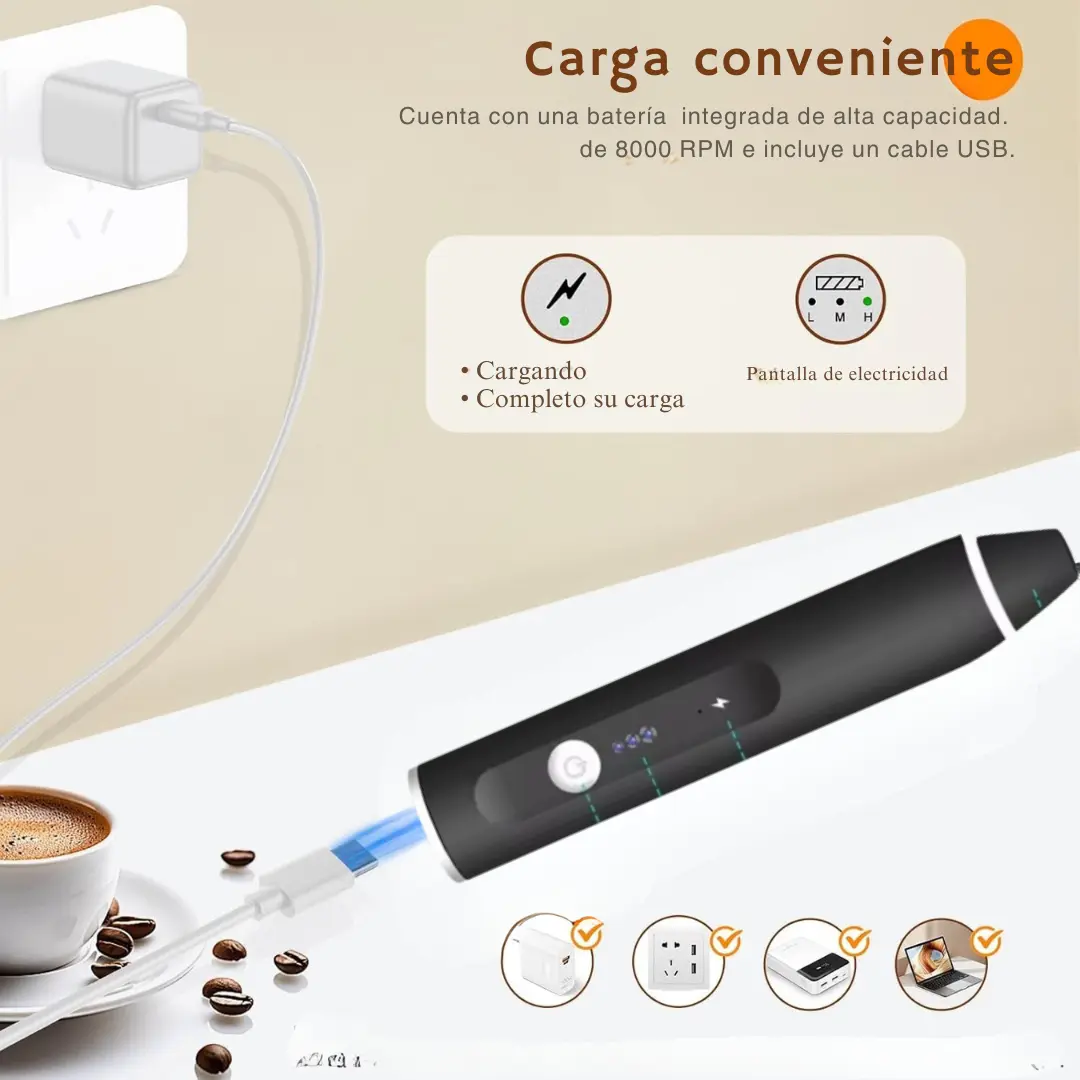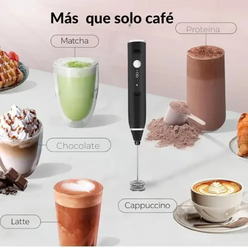Espumador de leche; dale un toque barista a tu café, capuccino o chocolate caliente.